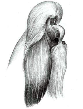 EXPRESSION – Warm, sweet, wide-eyed, friendly and trusting. An overall well-balanced and pleasant expression supersedes the importance of individual parts. Care should be taken to look and examine well beyond the hair to determine if what is seen is the actual head and expression rather than an image created by grooming technique. CLARIFICATION: The Shih Tzu should never have a hard or stern expression. As the standard specifically outlines, the head should be thoroughly examined by hand to determine the actual size, shape and expression.
