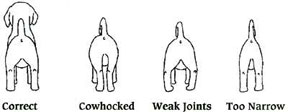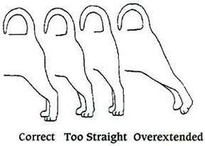 HINDQUARTERS – Angulation of hindquarters should be in balance with forequarters. CLARIFICATION: The rear legs should be in proportion with the front legs in both the bone and musculature. The stifles should be well turned in order to provide the desired amount of angulation to be in balance with the forequarters.