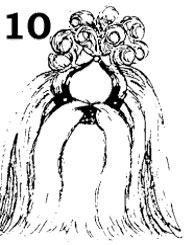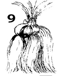 ![]() This is the critical step. Gently grab 8-10 hairs from the middle of the scalp firmly. This creates a lovely poof. Using your comb, smooth any wispies. Us the rat-tail to pull out the front of the topknot if you want more poof. |
