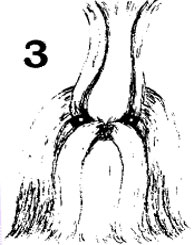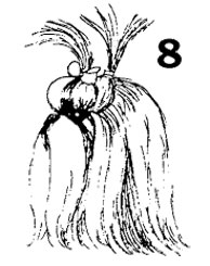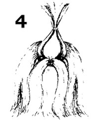 ![]() Then I part the back section. if the dog's head is small or sparse in topknot, I part back quite far. I generally round off the back section. |